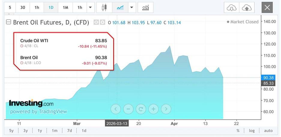 Giá dầu đã giảm hơn 10% vào phiên cuối tuần và hiện đang neo ở mức 80 – 90 USD thùng.